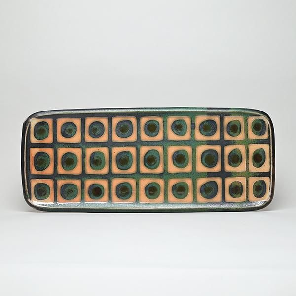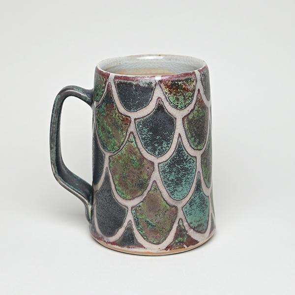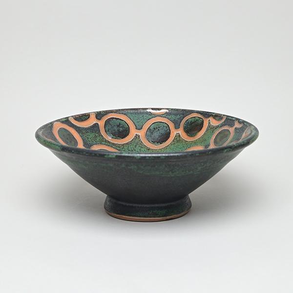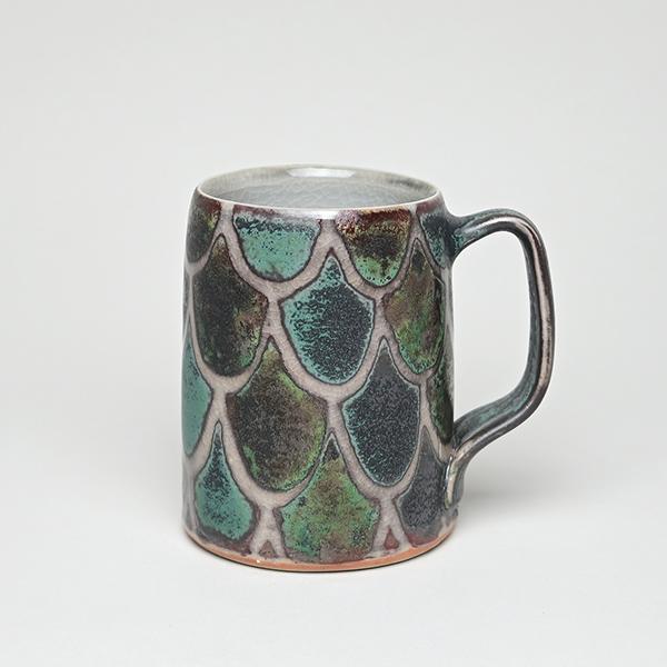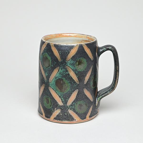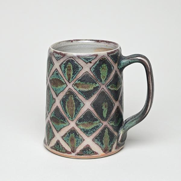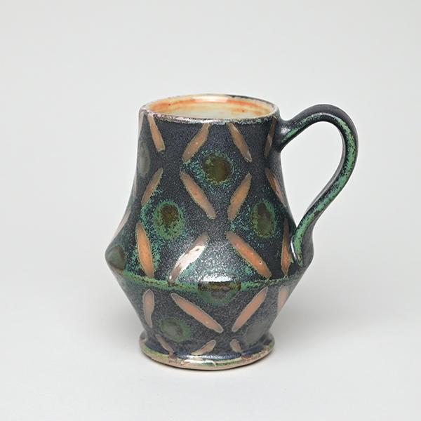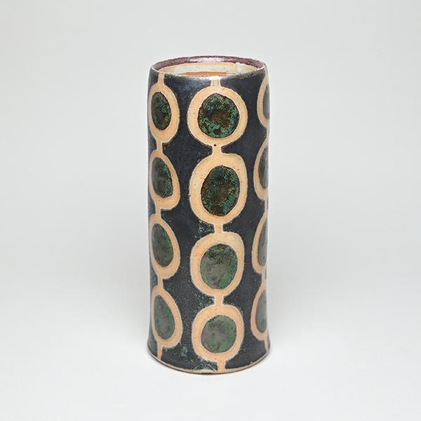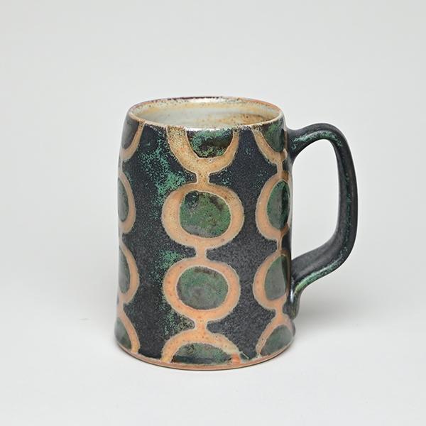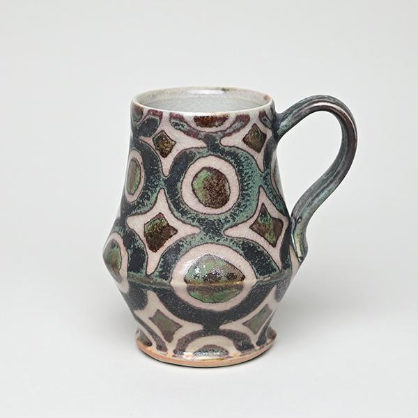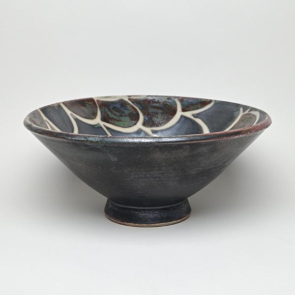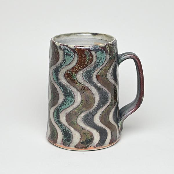 I work with porcelain and stoneware. My pots are thrown, thrown and altered, or hand-built. To achieve visual depth in my patterning, I employ five elements. Four of these wax resist, latex, dipping and brushwork of glazes are applied to bisqued pots. The pots are then high-fired in a reduction atmosphere with the intent of trapping carbon in the base glaze. It is trapped carbon that is the fifth and random element. Each pot is designed to serve a functional purpose and is compatible with modern appliances.