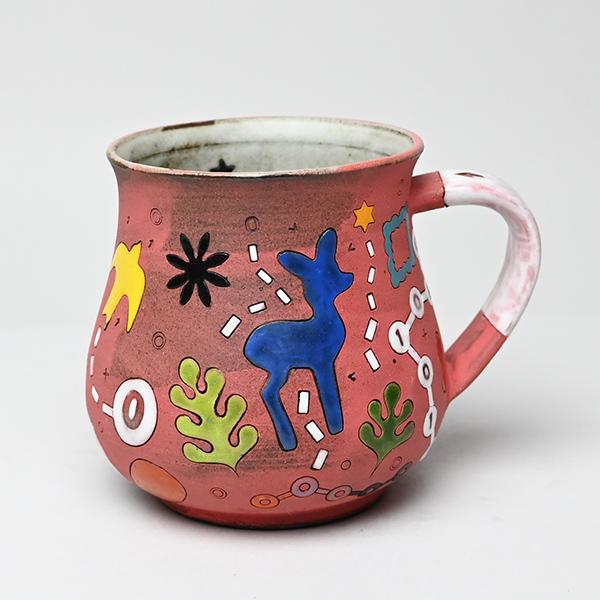 Red Potbelly Cup with Deer Motif