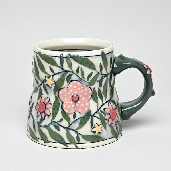 Green Vines + Pink Flower Mug
