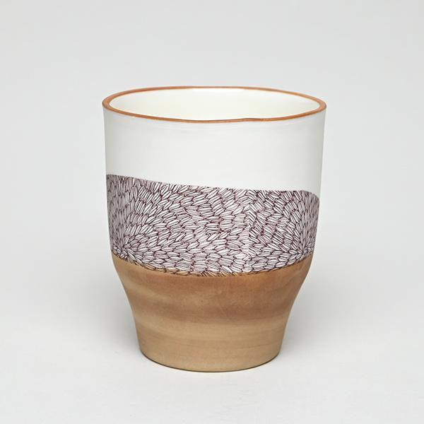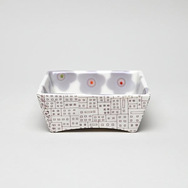 Sandra Torres’s use of porcelain plays on contrast and modulation of different colors and shades. The colors softness and sharp edges create a dramatic chromatic composition in contrast to the white, translucent and matte porcelain surface. This push and pull accentuates the simplicity of the shape. Sandra’s desire for thin, delicate forms with a sturdy body inspired her to use slip casting. Her interest in unglazed surfaces led to her usage of soluble salts to create a selective palette of color that creates watercolor-like effects. “Porcelain, in the thinnest of its expressions, demonstrates a life of its own, moving to the heat of the firing and resulting in an imprint of its own memory.”