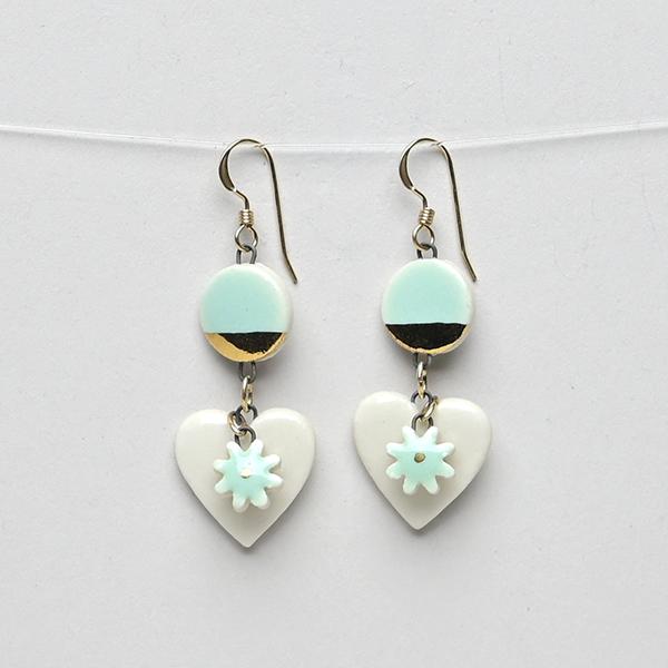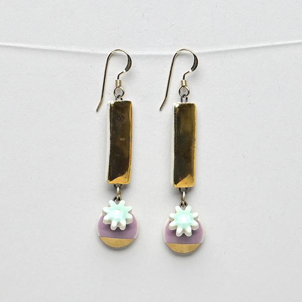 StitchPrism is designed and produced by KellyAnne Mifflin in Southwest Philadelphia. KellyAnne, a queer artist living with chronic illness, is a self-taught ceramicist who has been making adornment for body and home since 2009. All pieces begin as wet porcelain clay, then are cut and formed into shapes, joined with high heat wire, glazed in our signature colors, and fired in the kiln to 2232 degrees. They are topped with gold or silver metallic luster and kiln fired again, then paired with sterling silver, gold-filled, or surgical steel findings.