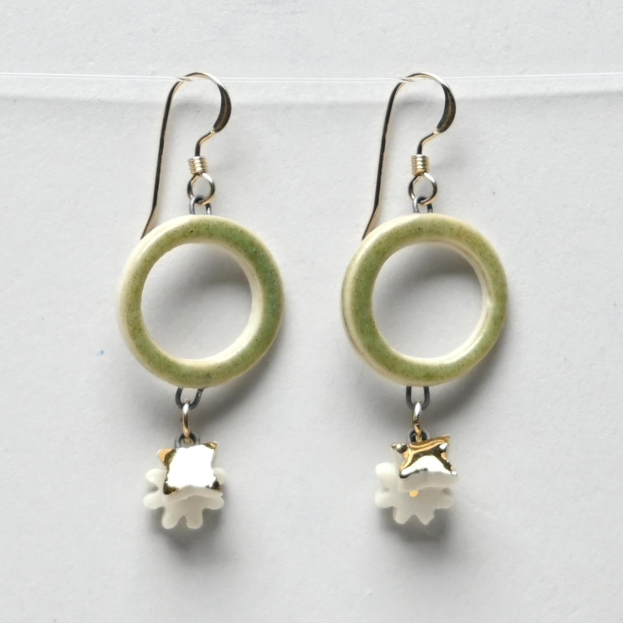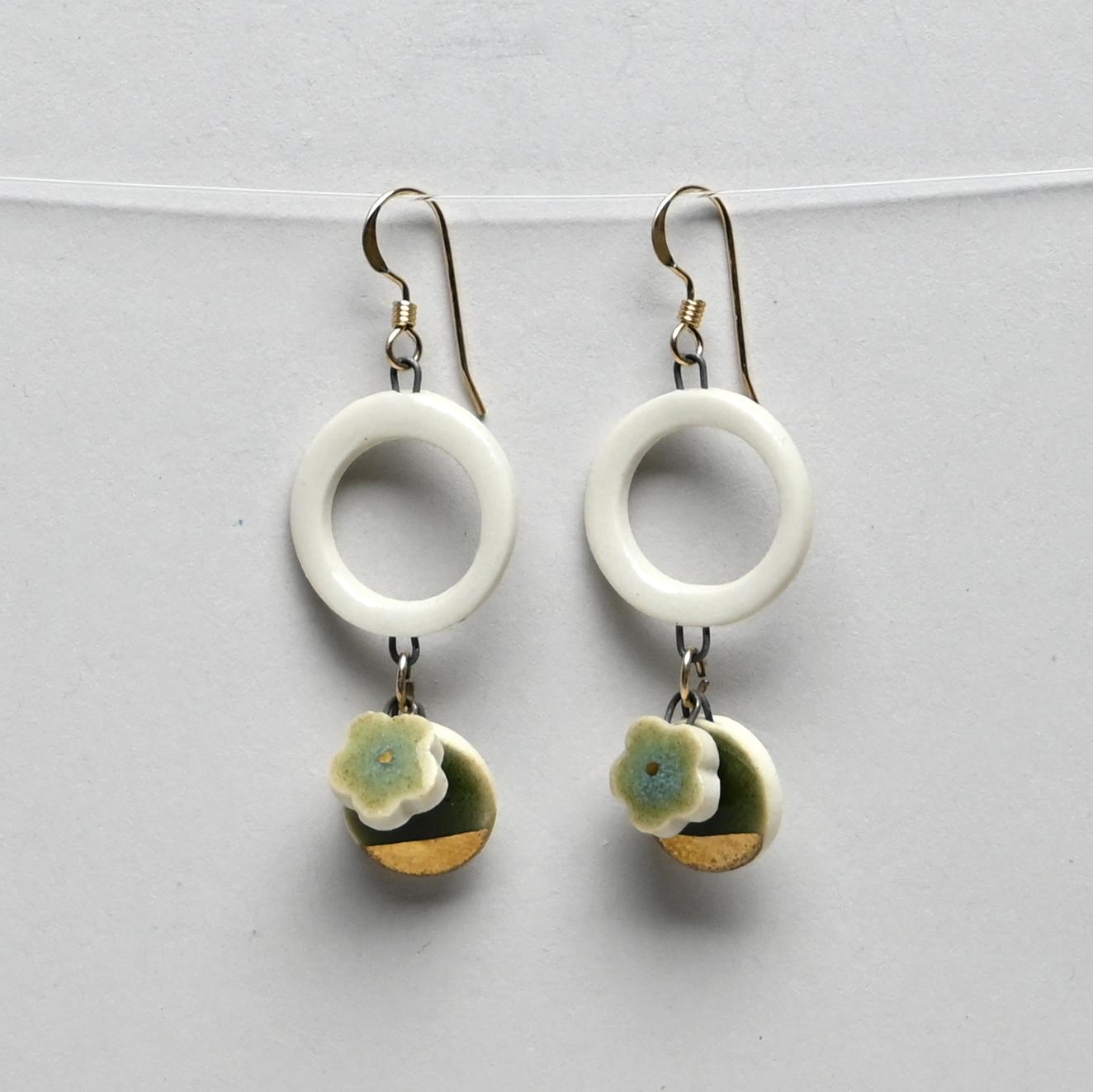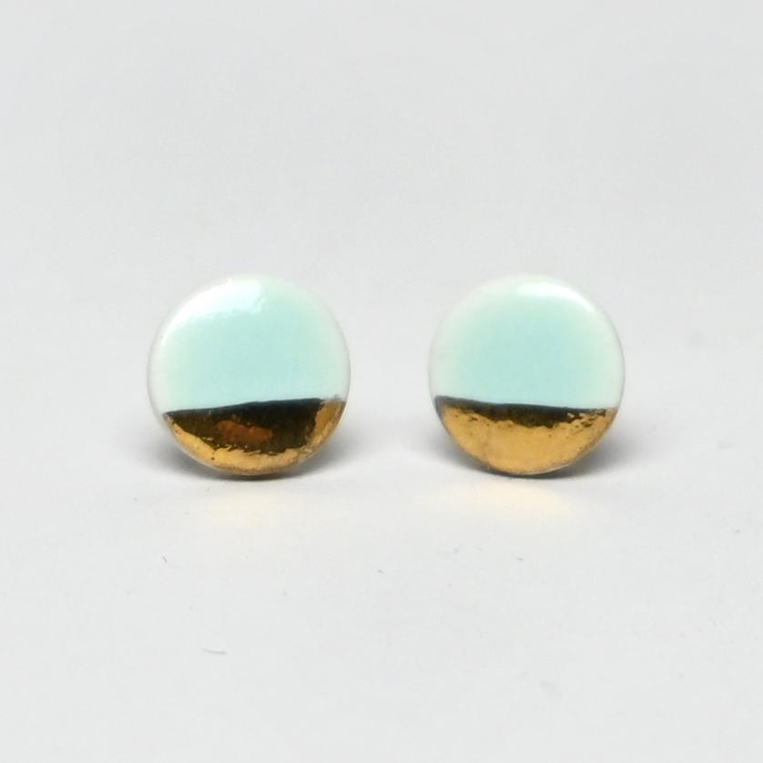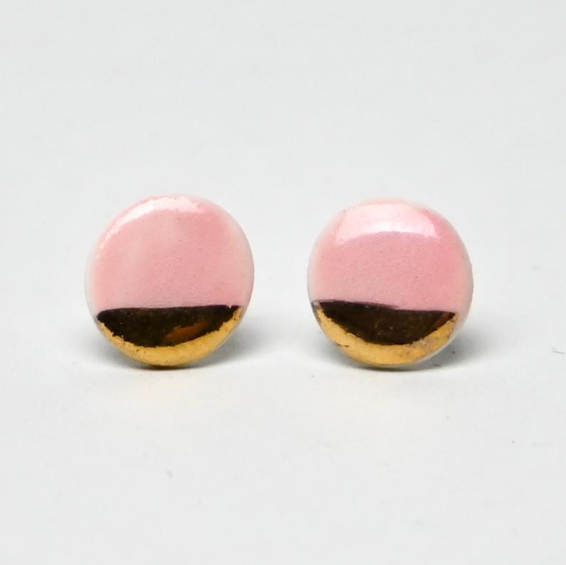 StitchPrism is designed and produced by KellyAnne Mifflin in Southwest Philadelphia. KellyAnne, a queer artist living with chronic illness, is a self-taught ceramicist who has been making adornment for body and home since 2009. All pieces begin as wet porcelain clay, then are cut and formed into shapes, joined with high heat wire, glazed in our signature colors, and fired in the kiln to 2232 degrees. They are topped with gold or silver metallic luster and kiln fired again, then paired with sterling silver, gold-filled, or surgical steel findings.