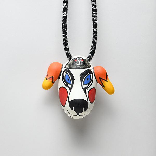 My characters display a specific, distorted body perspective. The forms are a bit clunky, chubby, anatomically misshapen, marked with accents which double the characters or hybridize their silhouettes. Each sculpture is a different personality, a personal story, a graphic “novel” featuring my favorite motifs: images of family relationships, parent and child, partners, pets. My emotions are “scratched” into them, with a subtle hint towards humor. Wonder, anger, fear and joy are all present there. What also influences the emotional charge of the figures is the colour scheme of my sculptures, defining the characters and saturating their personal stories placed on the bodies and clothing. I emphasize their colouration by the black-and-white drawings in the background, constituting a backdrop to my stories.