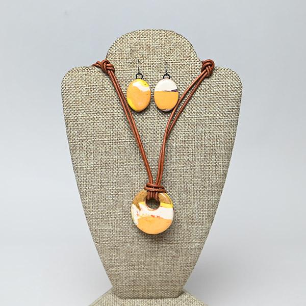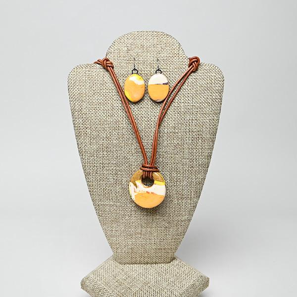 Earrings: 0.75" x 1" x 0.25", Necklace: 27"