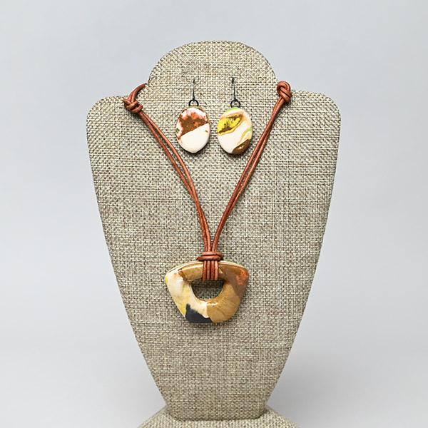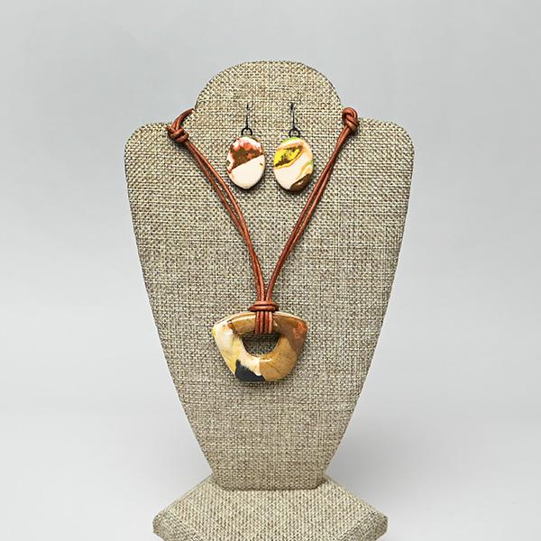 Earrings: 0.75" x 1" x 0.25", Necklace: 27"