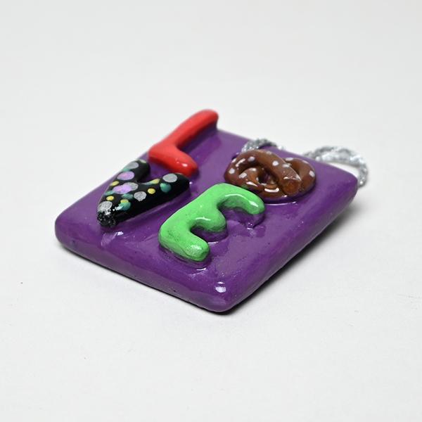 Base color is purple, letter colors may vary.