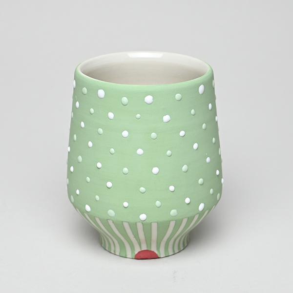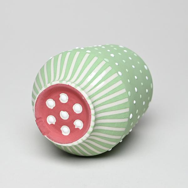 Pistachio w/white and pistachio dot matrix; striped skirt