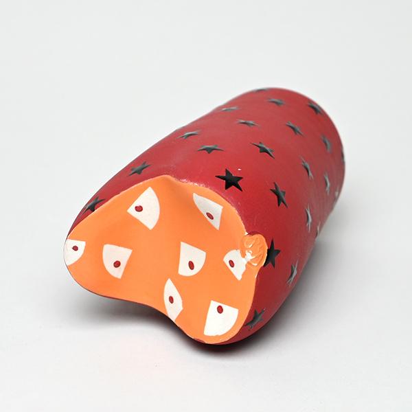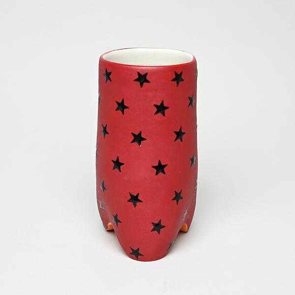 Red with glossy black rock star pattern.