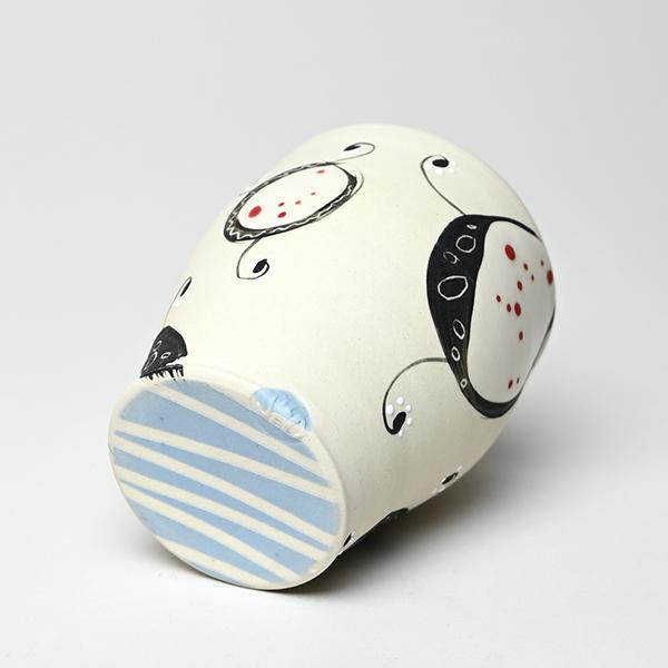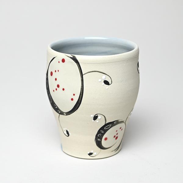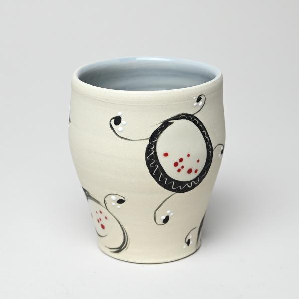 Flat-bottomed cup with brushwork and glaze dot details; iceberg blue interior.
