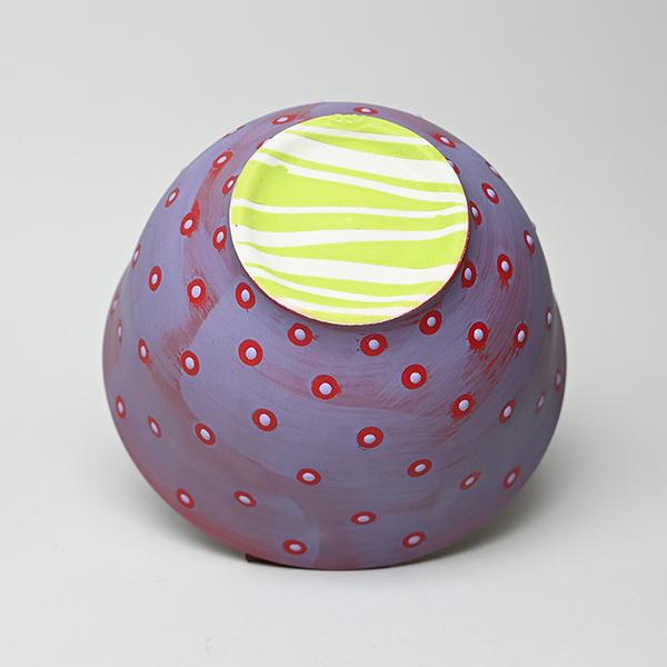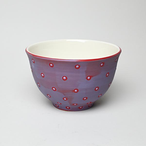 red frosted with lavender w/small polka dot matrix & lavendar glaze dots.