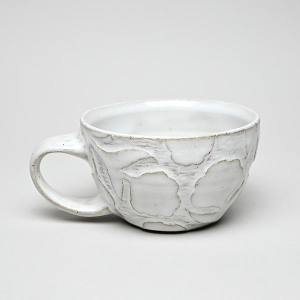Mug with carved flower design.