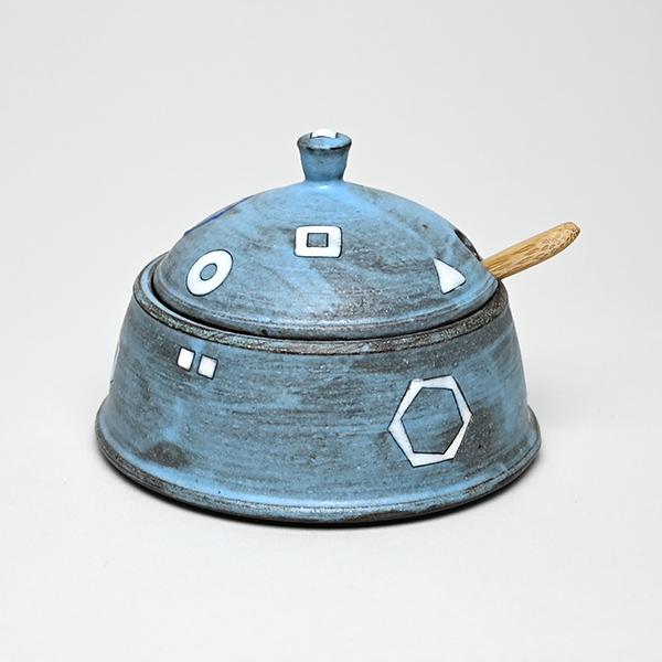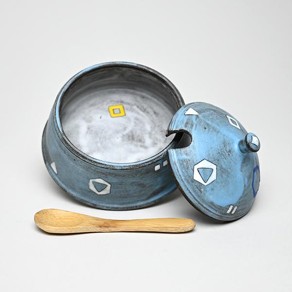 Blue Spice Jar with Tiny Bamboo Spoon